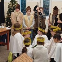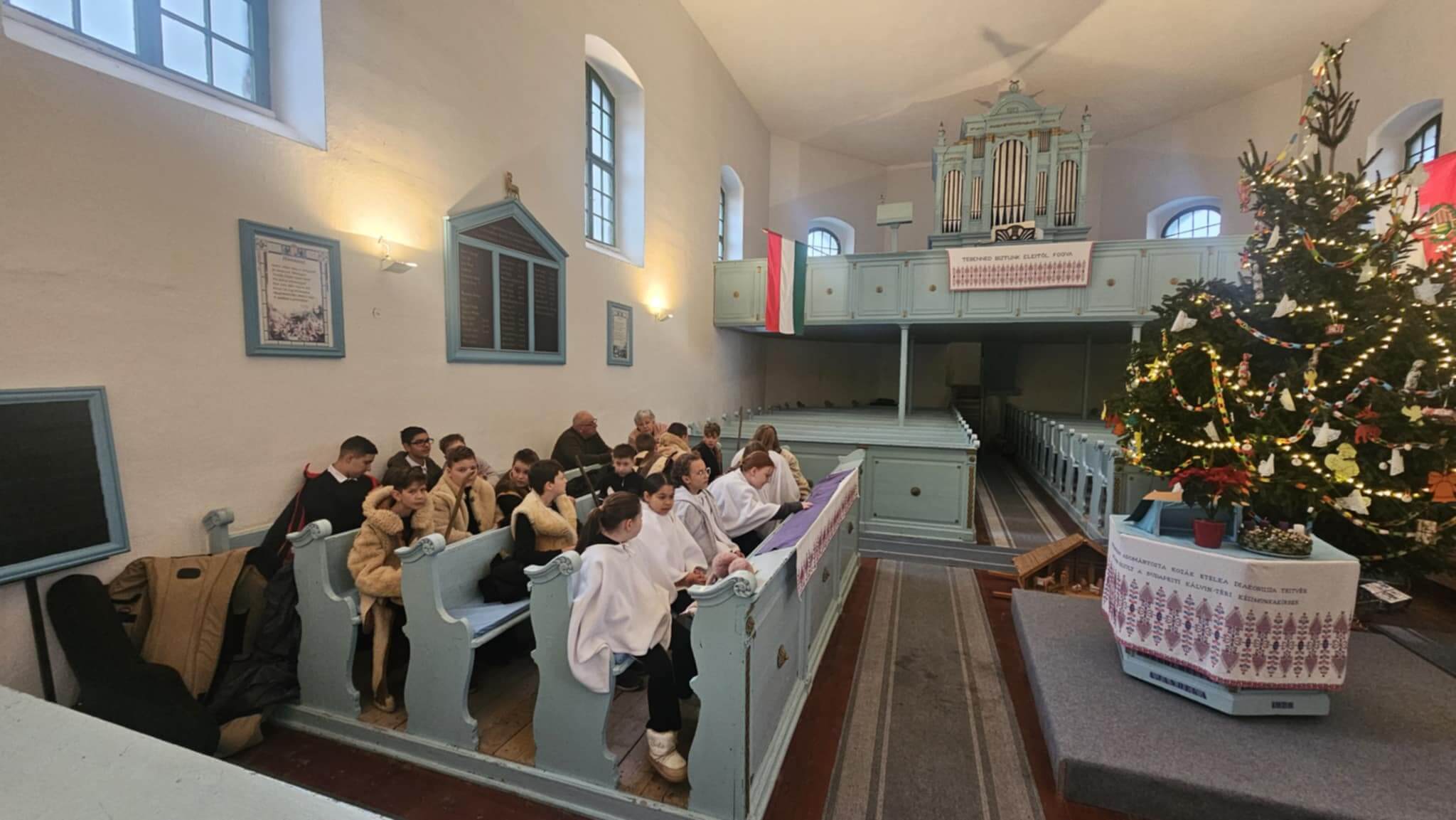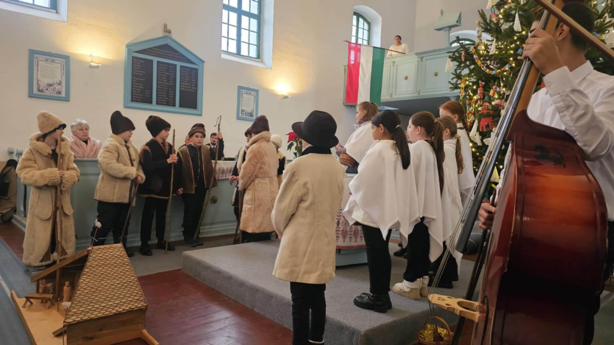 Legutolsó alkalomként az Ártáni Református Egyházközség fogadta gyermekeinket, és az istentisztelet részeként tekintették meg a jelenlévők a karácsonyi történetet. A 4. osztályosok betlehemesét hangszeres kísérettel segítették a népzene tanszak növendékei.