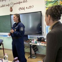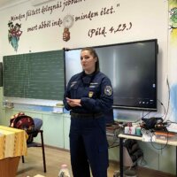 Ezt követően a Rendőrség képviselői vették át a terepet. A tanulók megismerkedhettek a járőrautóval, sőt, bele is ülhettek. A főtörzsőrmester asszony egy rövid, ötpereces kisfilmet mutatott be a rendőrség mindennapi munkájáról, amelyből kiderült, milyen sokrétű és felelősségteljes feladataik vannak. A vetítés után a gyerekek bátran kérdeztek – a közlekedésbiztonságtól kezdve egészen a nyomozói munkáig –, a válaszok pedig sok érdekességet tartogattak.