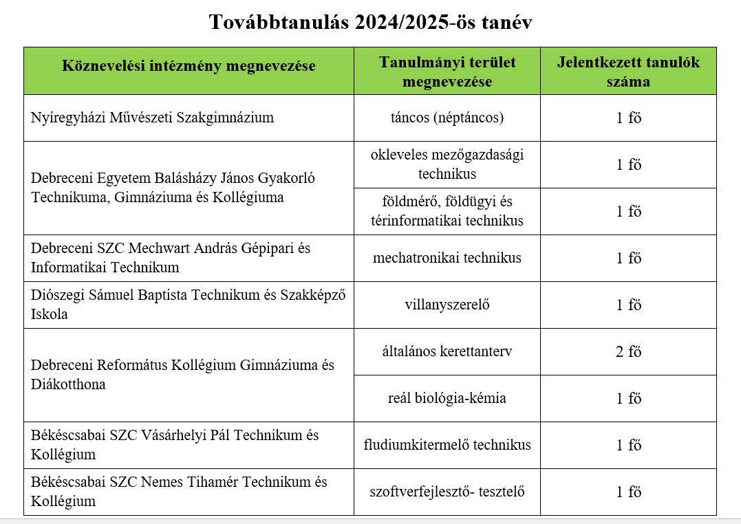 Továbbtanulási eredmények a 2024/2025-ös tanévben