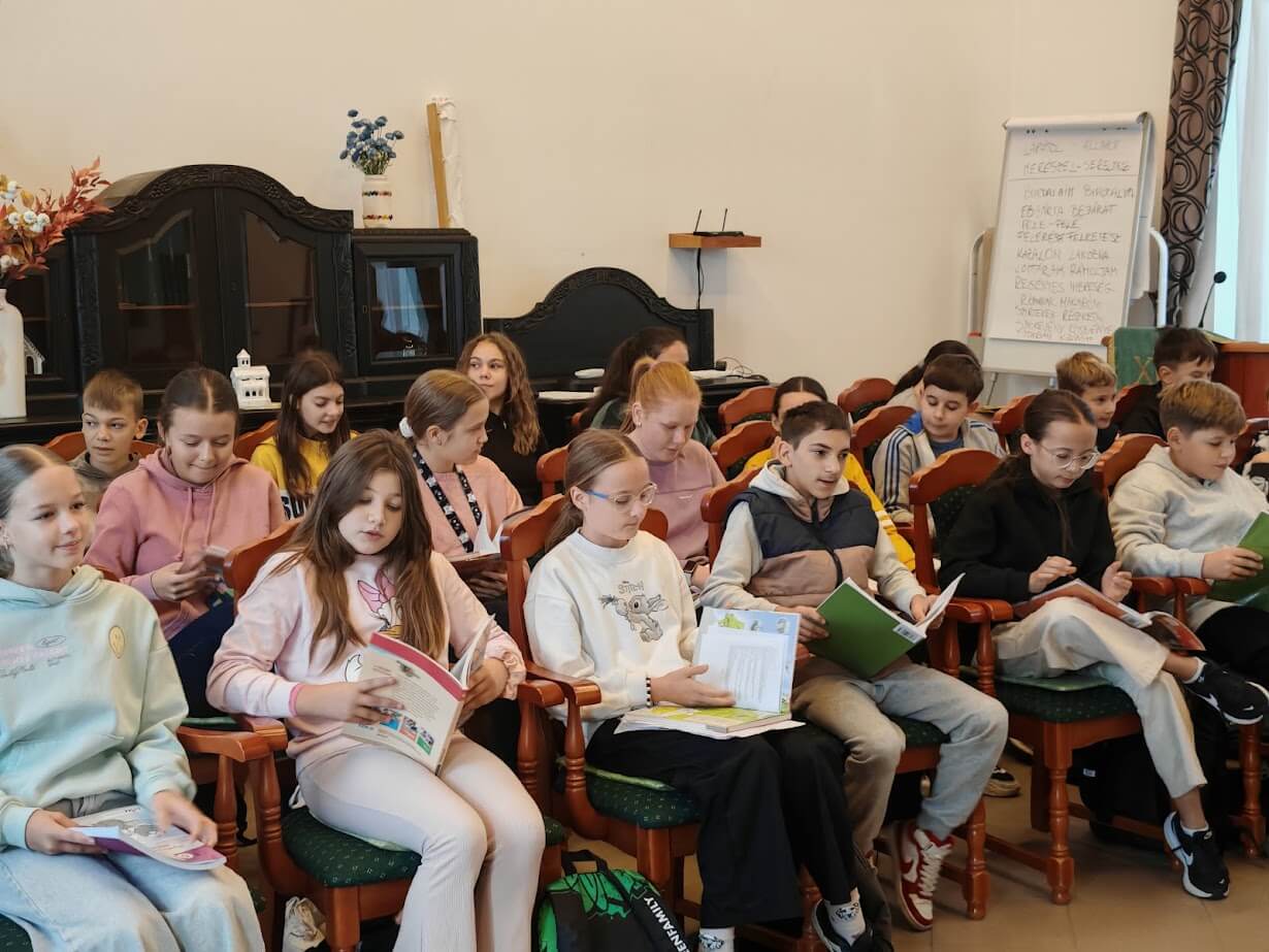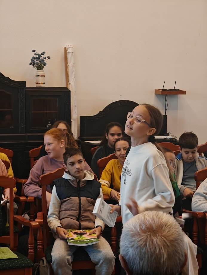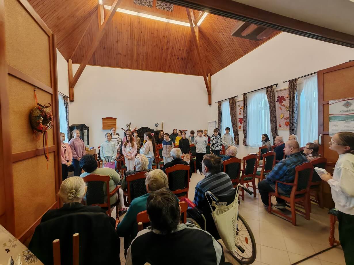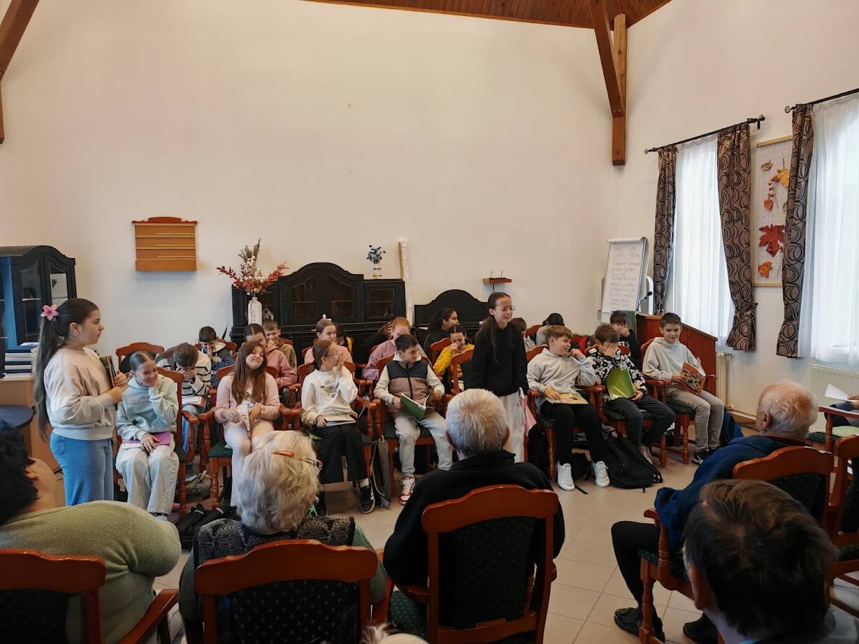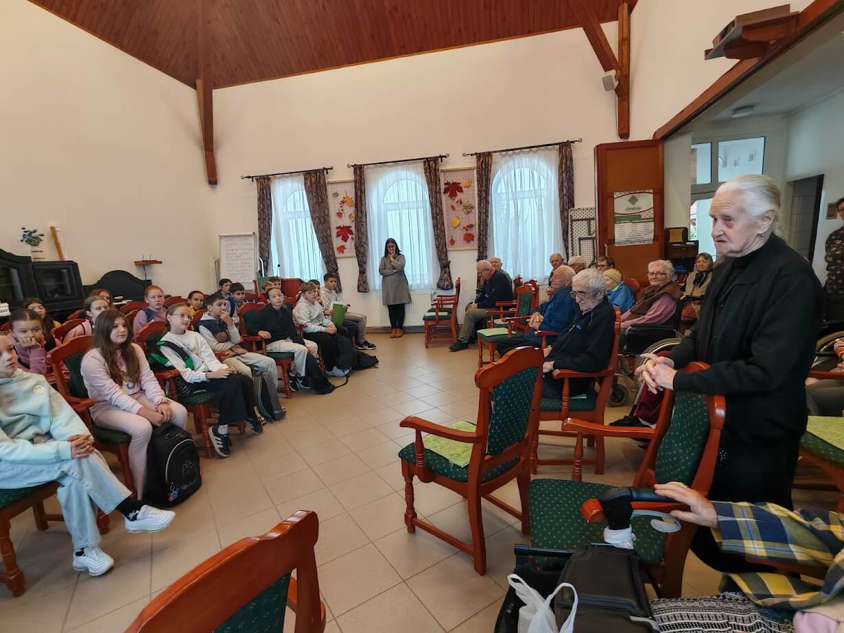 A hatodik osztályosok emlékezetes, szívet-lelket melengető látogatást tettek osztályfőnökükkel, Ferenczi Tünde tanárnővel a Gondviselés Házában, 2025. október 02-án. Küldetésük nemes célja az volt, hogy köszöntsék az ott lakókat az idősek napja alkalmából. A kora reggeli érkezés ellenére szép számmal egybegyűltek a bentlakók , és örömmel fogadták a hatodikosok derűs jelenetét. Az előadás után a gyerekek meglepetésére egy idős néni hosszú verssel lepte meg a jelenlévőket.