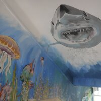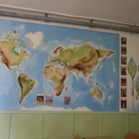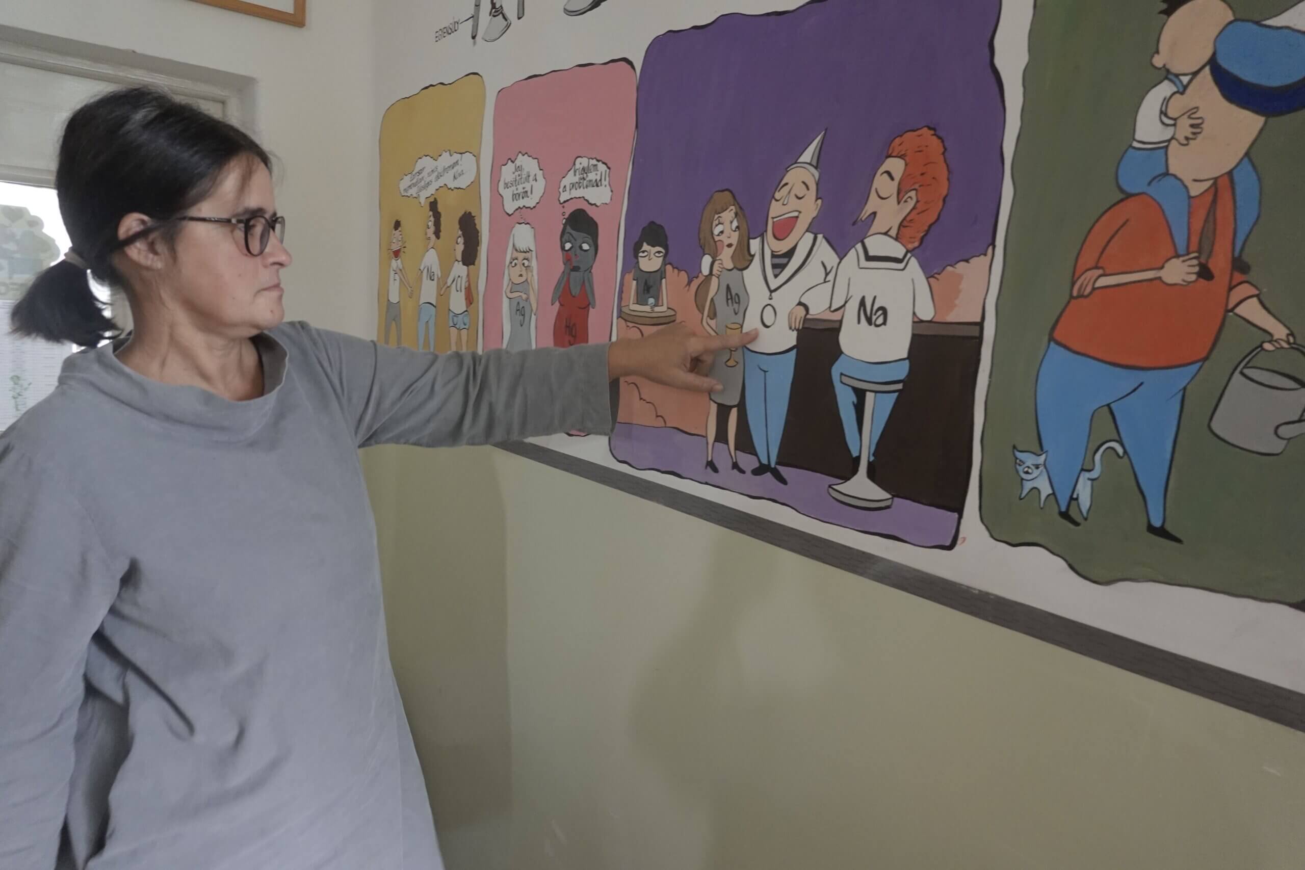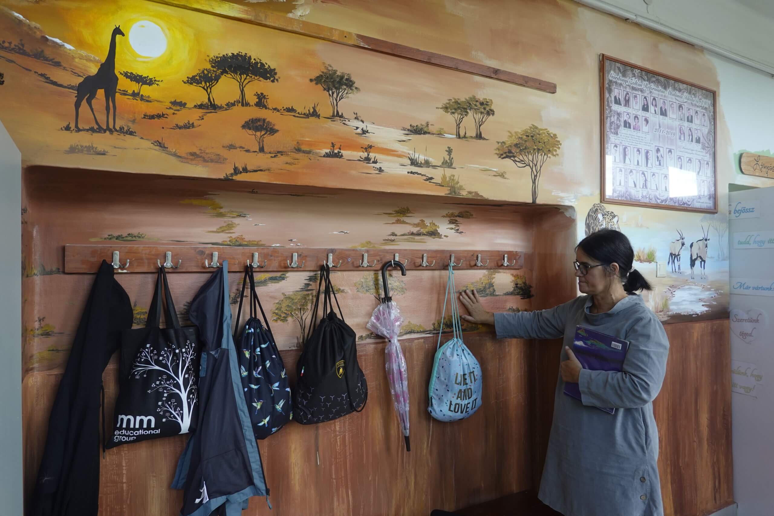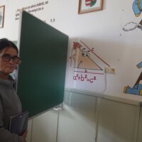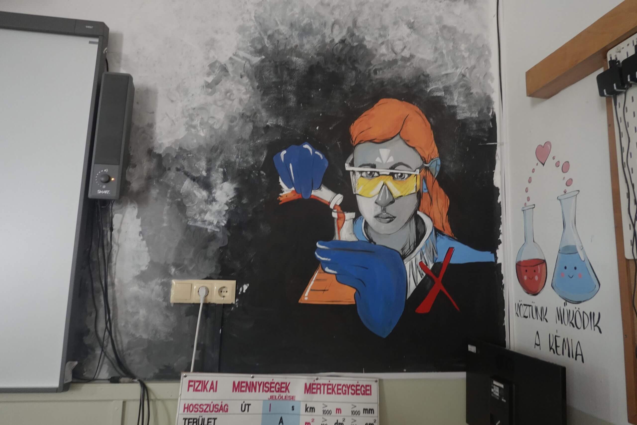 A már elkészült falfelületek önmagukért beszélnek – aki látja, mindenki csodálja. Közben pedig szívja magába azt a rengeteg információt, amit az adott szaktantermeknek megfelelően, tudatosan, jól megtervezve varázsolt a falra Tanárnő és csapata.