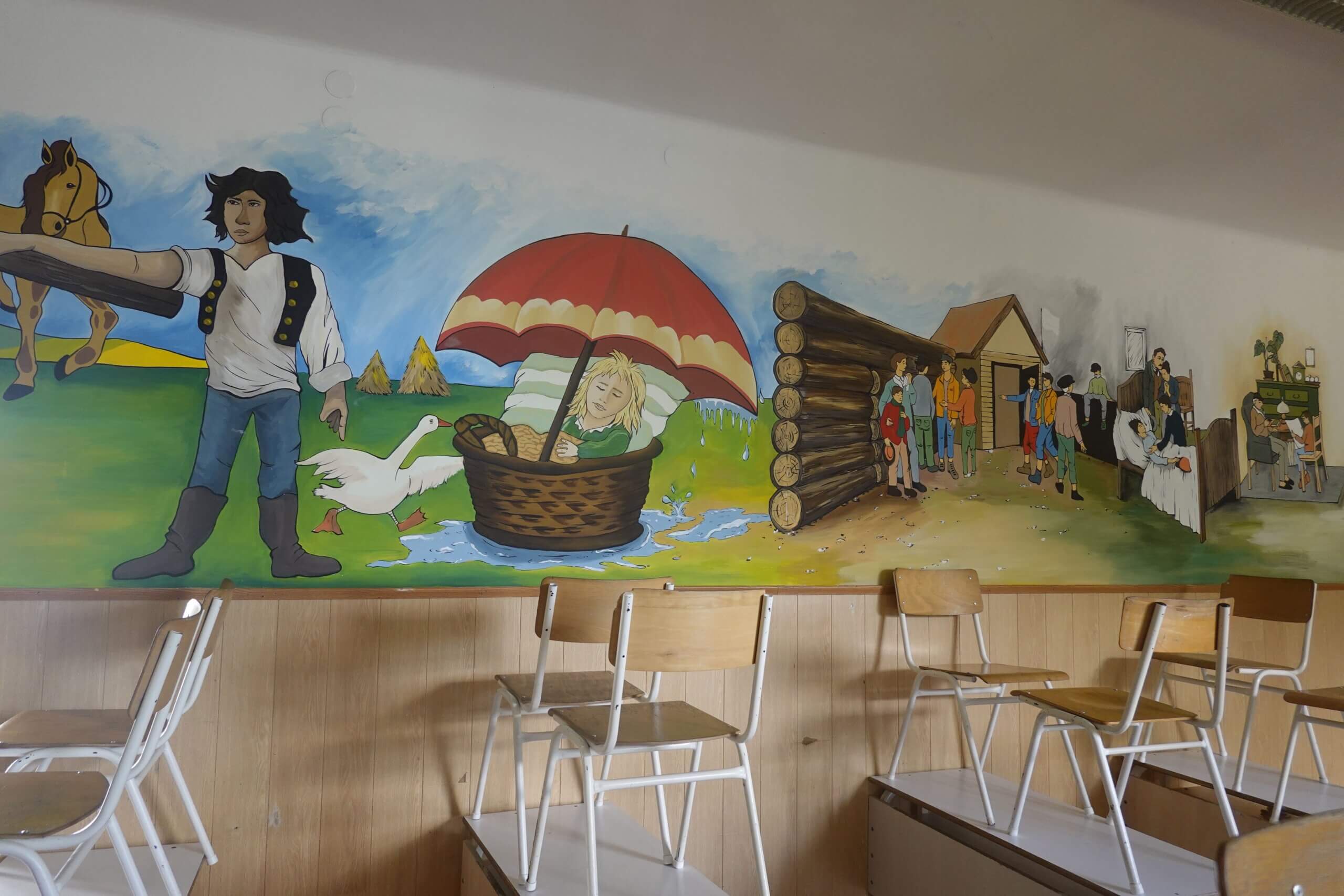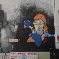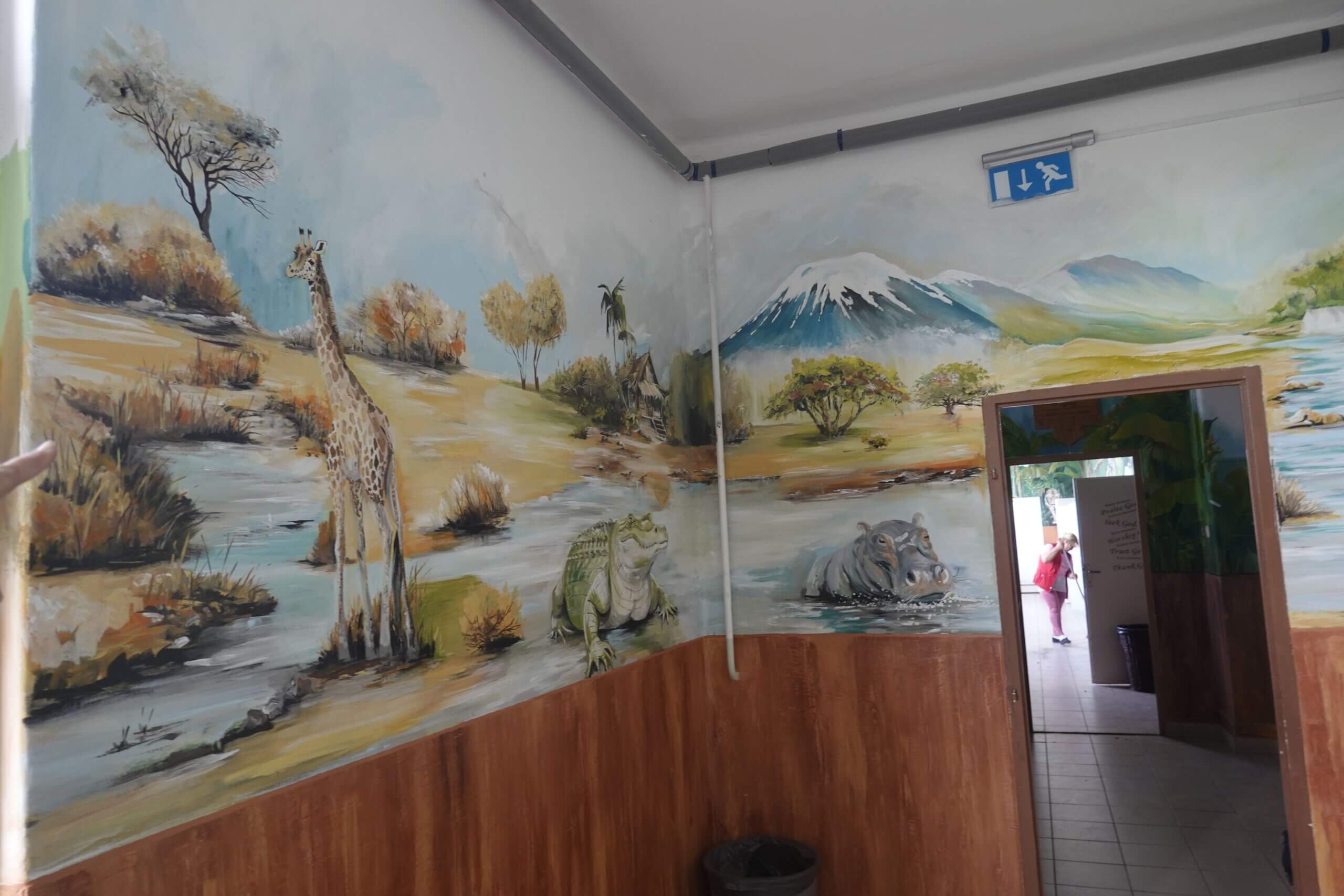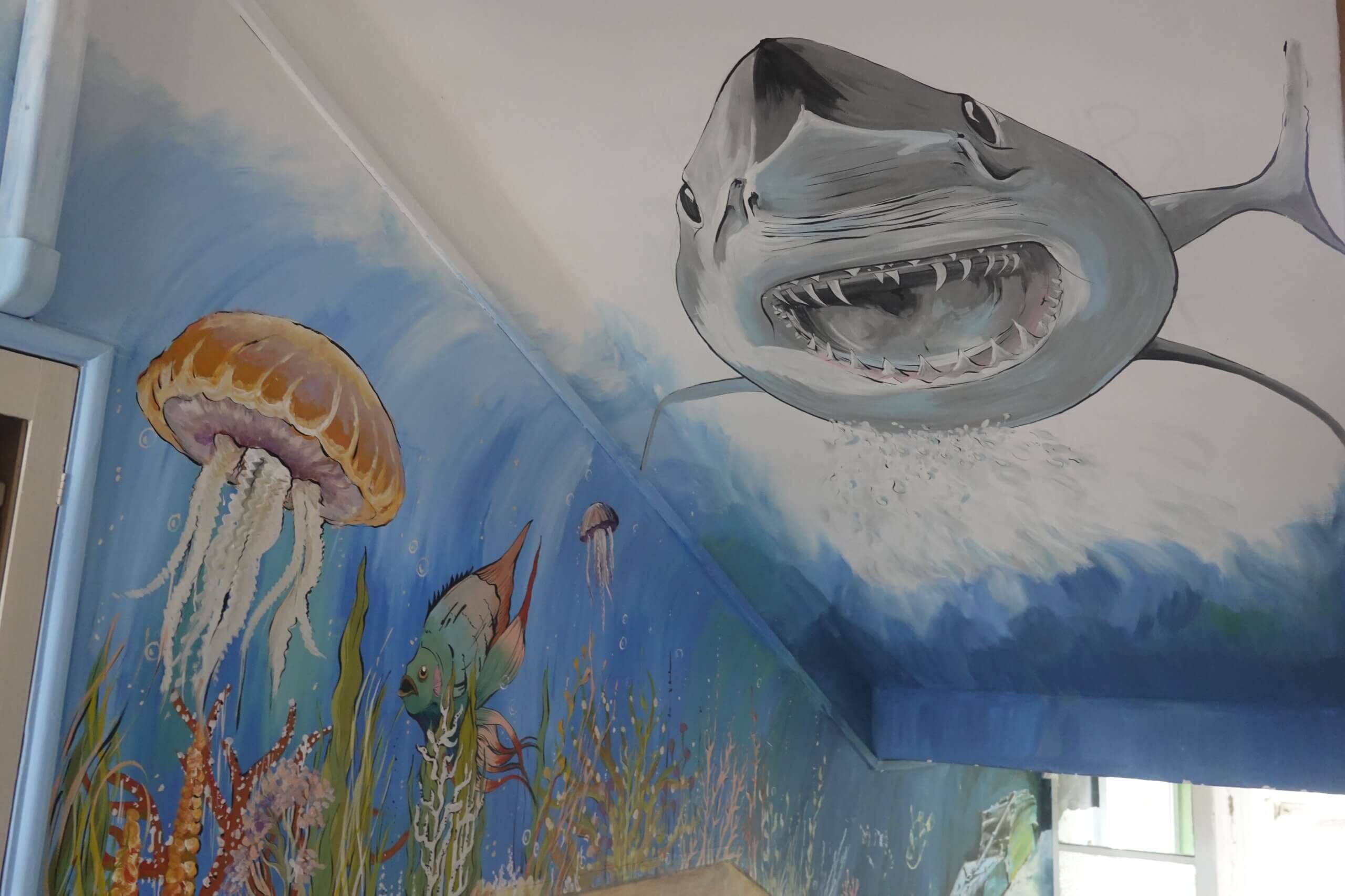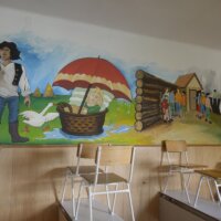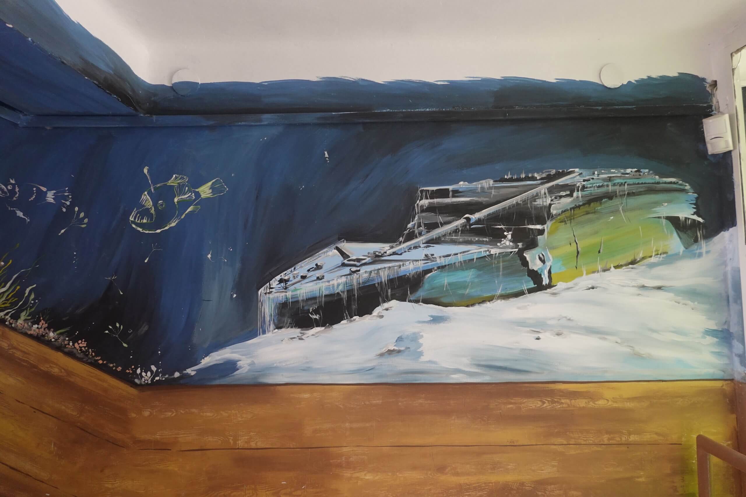 Ferenczi Tünde tanárnő, iskolánk természettudományokat tanító pedagógusa, s egyben grafika tanszakunk vezetője, nem kisebb vállalást tett, minthogy felsős iskolaépületünk egykori átlagos, nem túl izgalmas belső terét újrafesti, tematikusan, az oktatás szolgálatába állítva. Csatlakoztak hozzá többen grafikás növendékei közül, így vált végül közös alkotótérré iskolaépületünk.