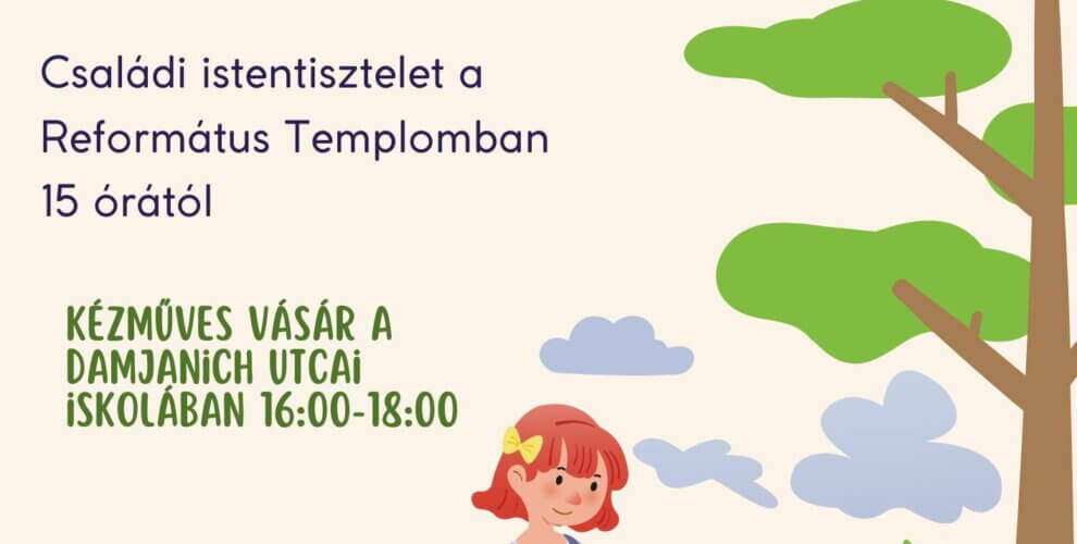 15 órától a Református Nagytemplomban adunk hálát a teremtett világért és annak minden gyümölcséért, 16 órától pedig jótékonysági kézműves vásárt szervezünk a Damjanich úti épületünkben.