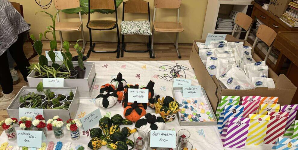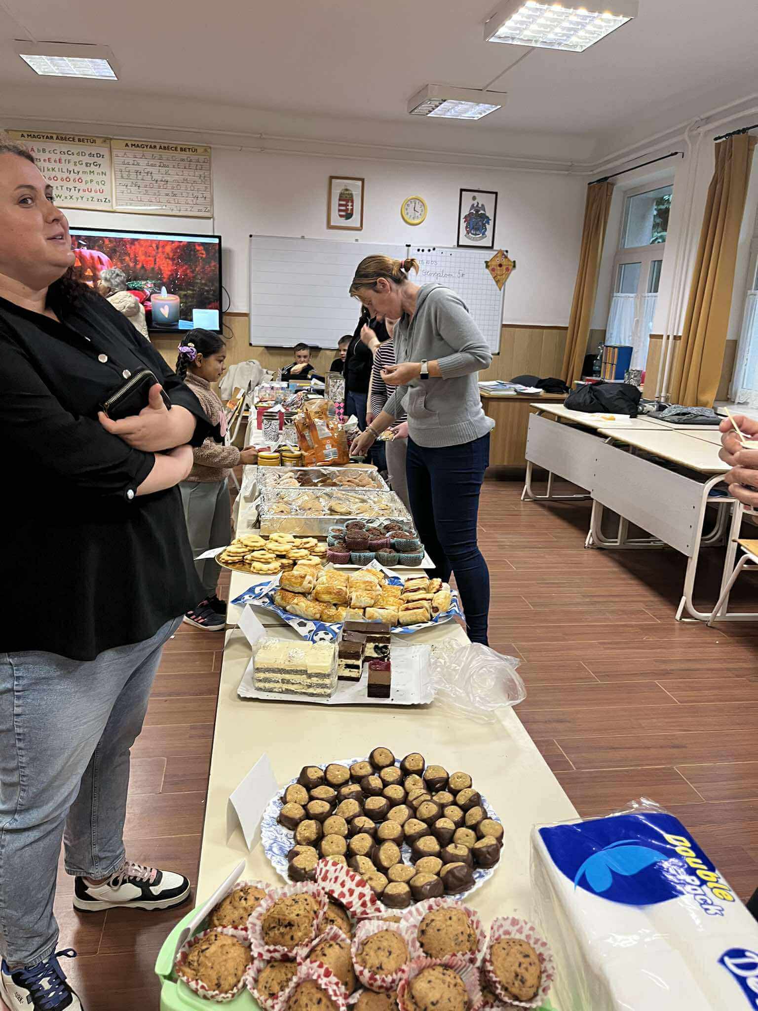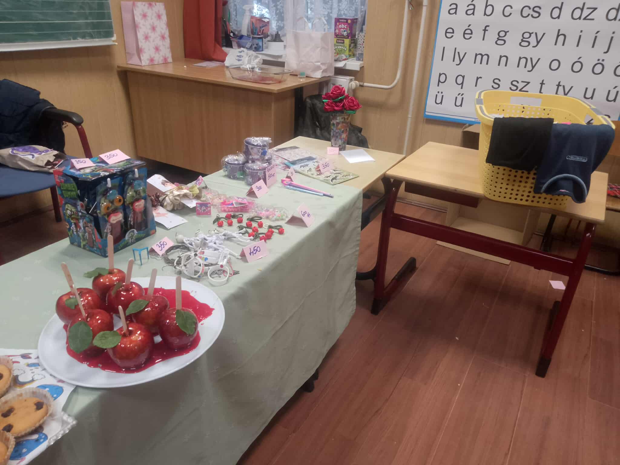 Ezután a kézzel készült termékek, sütemények kerültek főszerepbe. Diákok, szülők, nagyszülők és pedagógusok együtt, közösen csodálhatták meg az osztálytermekben a vásár kincseit.