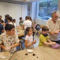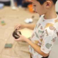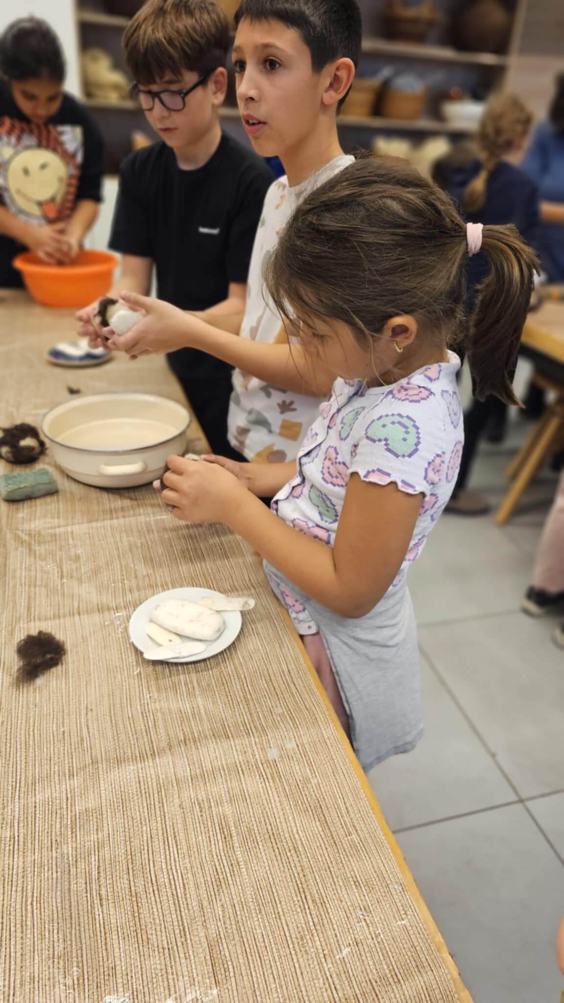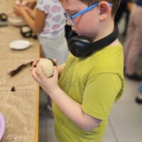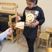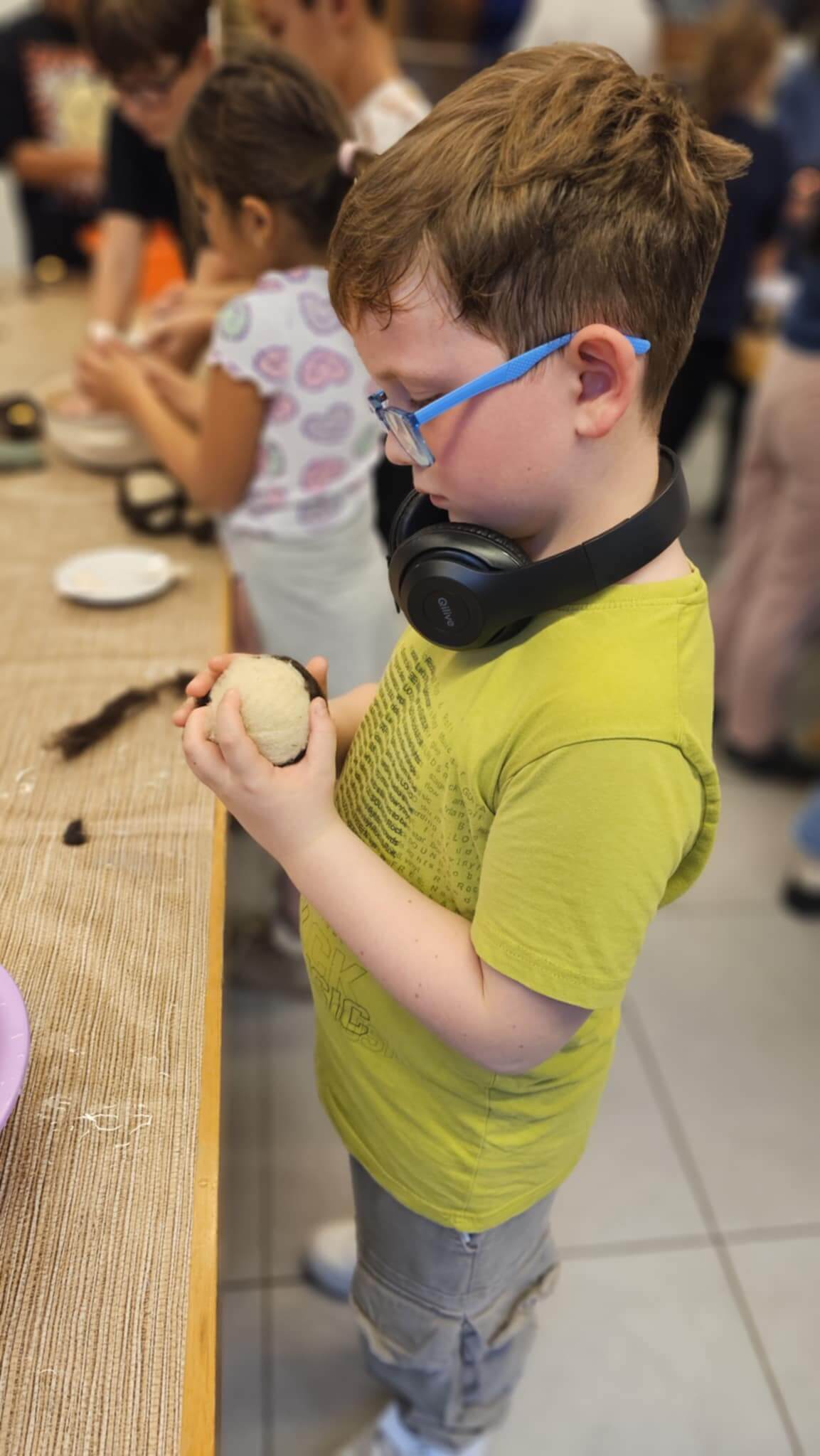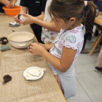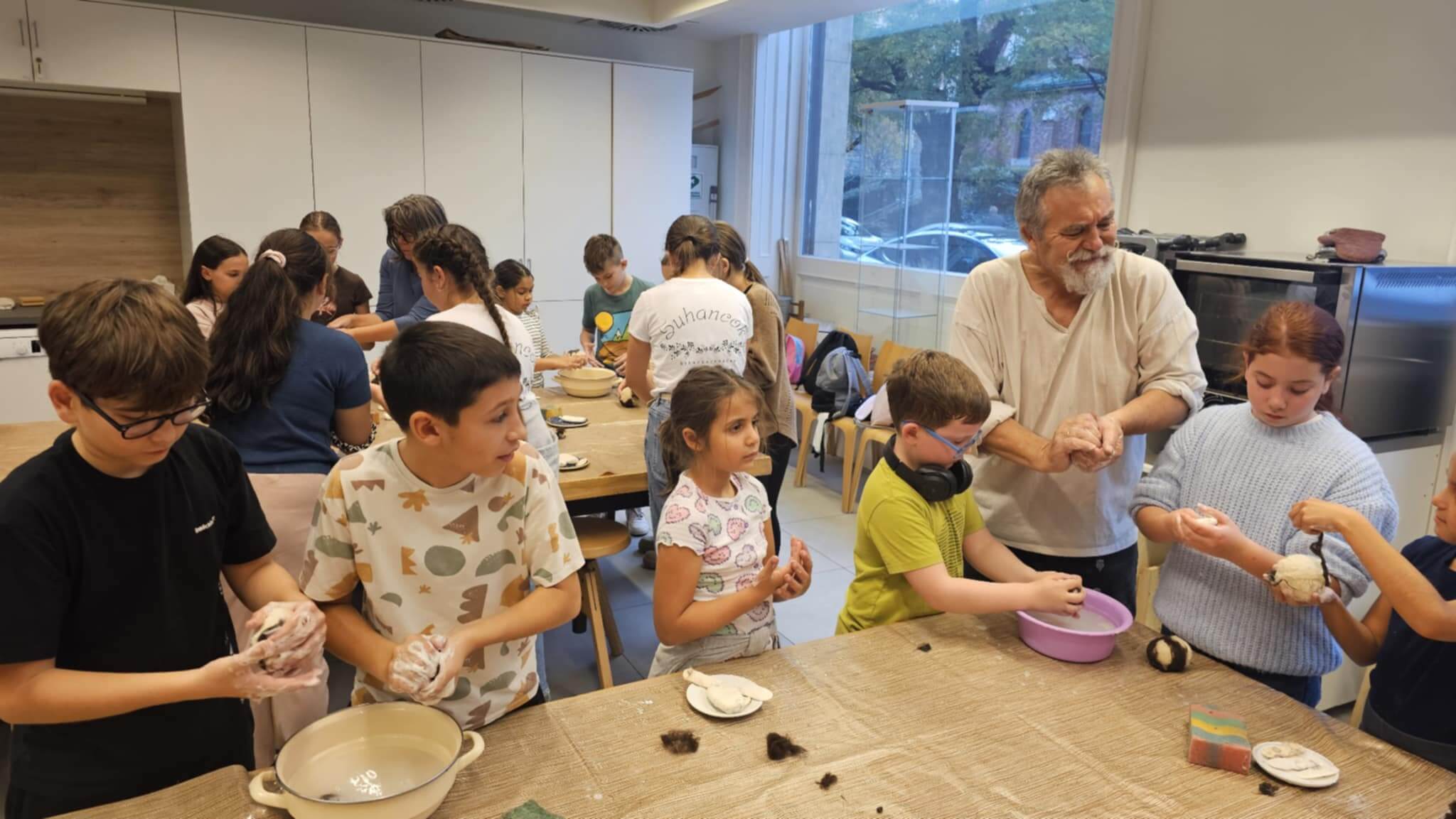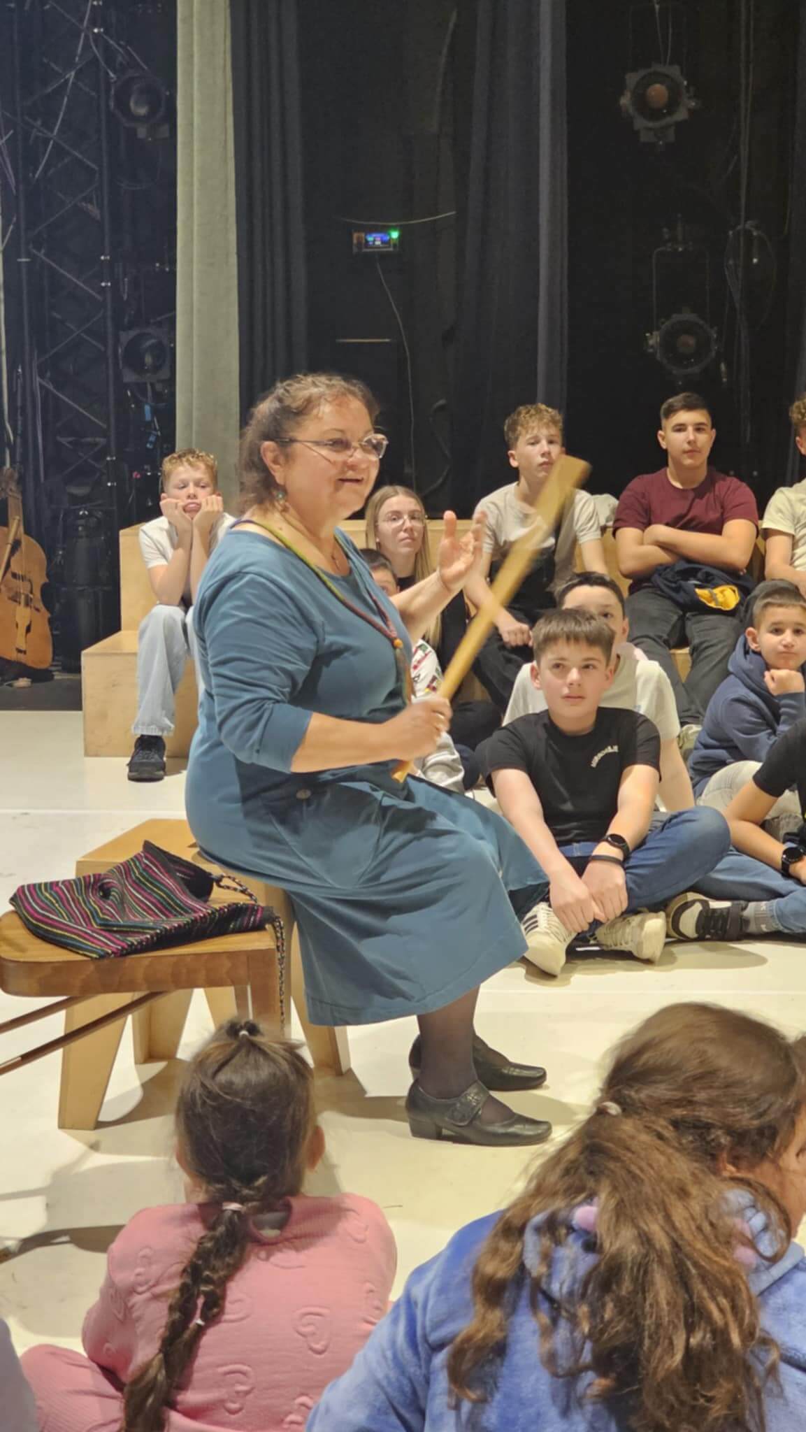 Később, bepillantást nyertünk a Hagyományok Háza néhány műhelyébe, ahol nemezeltünk, körmönfontunk, és a profi táncosokkal, valamint az Állami Nép Együttes zenekarával együtt mulattunk és játszottunk.