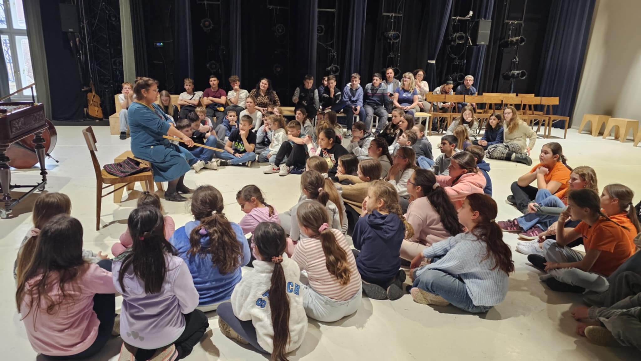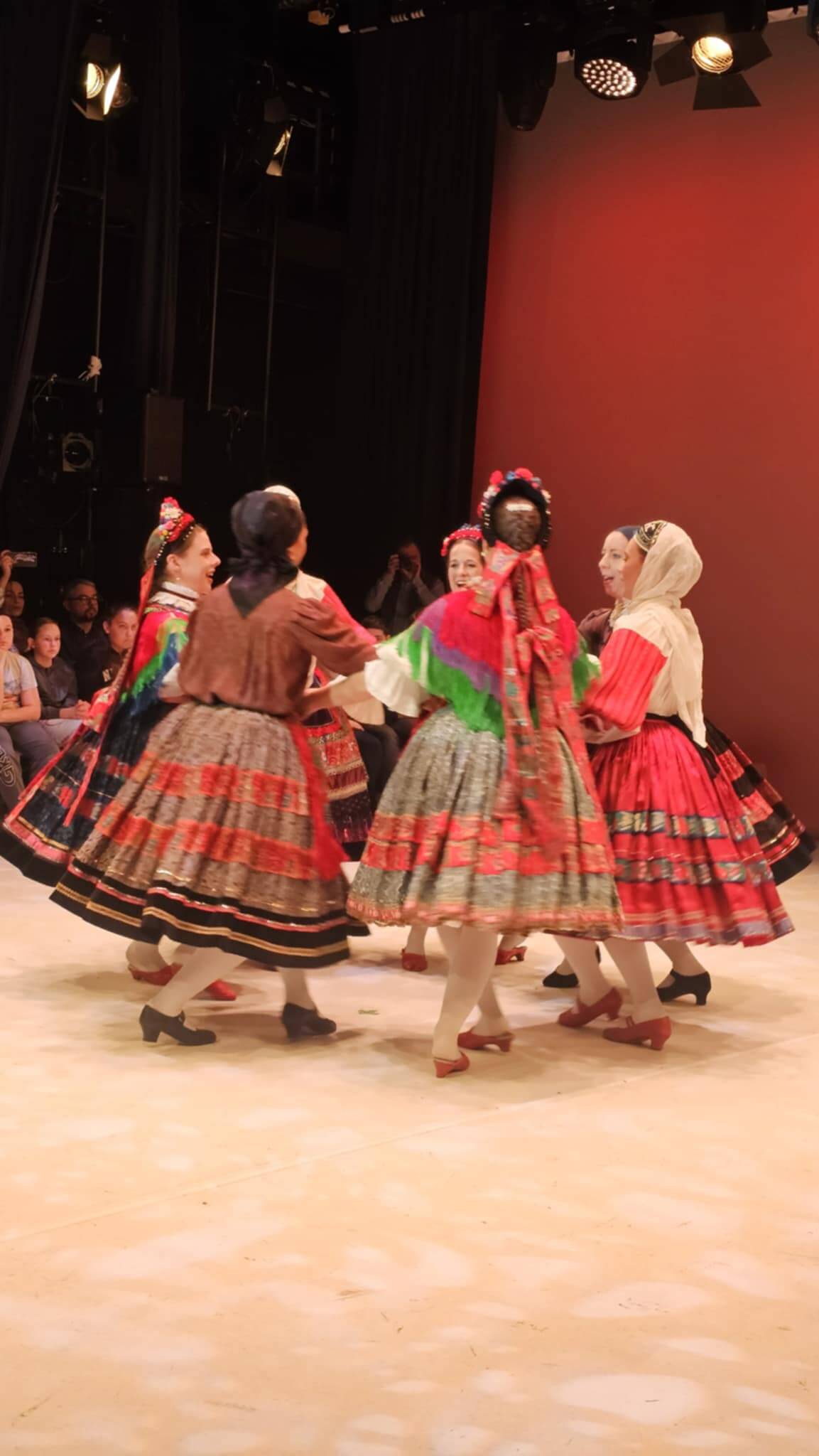 A Magyar Állami Népi Együttes (KATTINTS!) táncosainak előadásában megismerhettük a Kárpát-medence magyarok lakta vidékeinek táncait, és csodás népviseleteit. Sárközi menyasszonyt öltöztettünk, ügyességi táncokat próbálhattunk ki, ezt követően pedig Fábián Éva (KATTINTS!) mesemondó, népdalénekes mesélt nekünk Szent Márton lúdjáról, és tanított közben néhány dalt is.